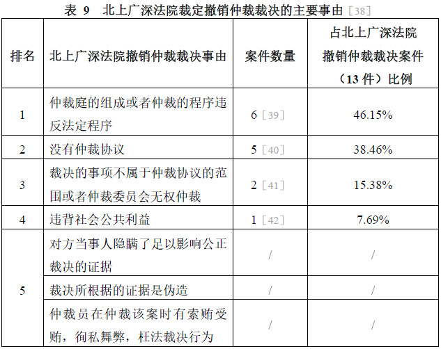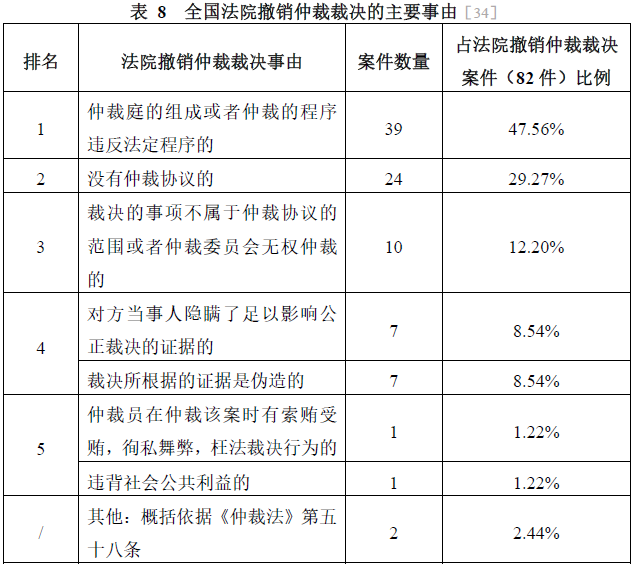 [35]以枉法裁決為由裁定撤銷仲裁裁決:(2020)甘01民特18號(hào)。以違背社會(huì)公共利益為由裁定撤銷仲裁裁決:(2018)粵03民特719號(hào)。