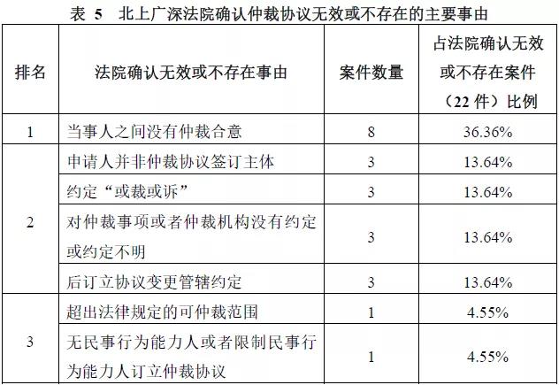 四地法院確認(rèn)仲裁協(xié)議無(wú)效或不存在的主要事由見(jiàn)表5。