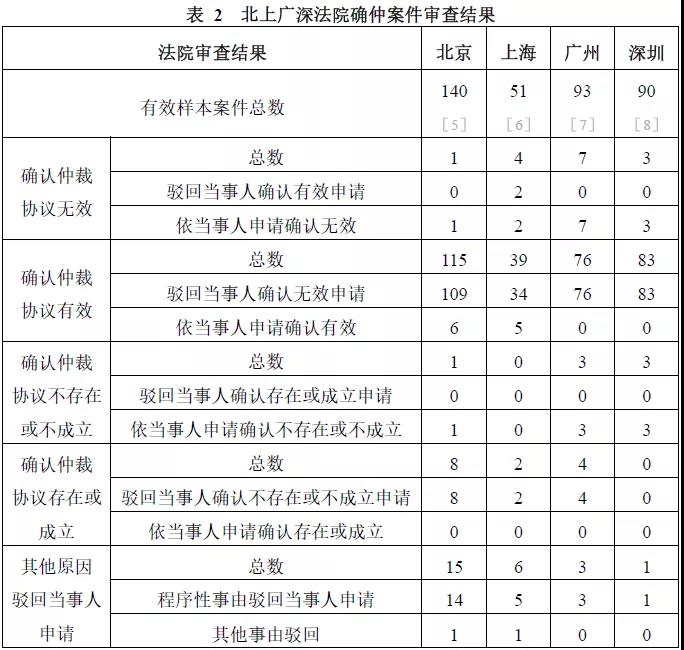 2. 北上廣深四地法院確仲案件審查情況