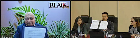 2021年6月16日,中國國際經(jīng)濟貿(mào)易仲裁委員會(CIETAC)與孟加拉國際仲裁中心(BIAC)通過線上方式舉行了《合作協(xié)議》簽署儀式。貿(mào)仲副主任兼秘書長王承杰先生與孟加拉國際仲裁中心首席執(zhí)行官Muhammad A. (Rumee) Ali先生分別代表雙方在《合作協(xié)議》上簽字。