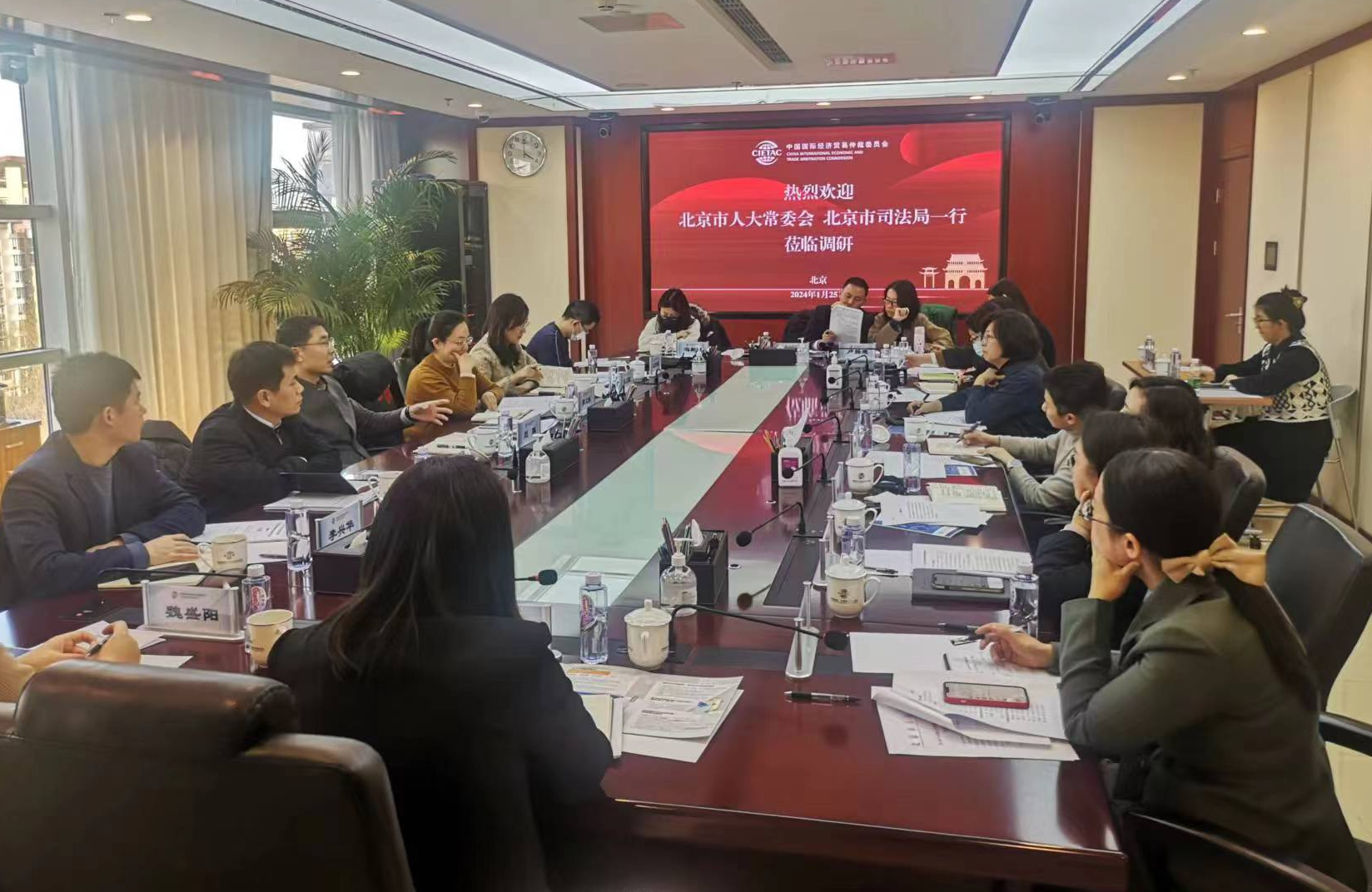 2024年1月25日下午,北京市人大常委會、北京市司法局一行到訪貿(mào)仲,就北京推進國際商事仲裁中心建設(shè)及有關(guān)立法工作進行調(diào)研。中國國際經(jīng)濟貿(mào)易仲裁委員會(以下簡稱“貿(mào)仲”)仲裁院副院長解常晴接待了到訪人員。