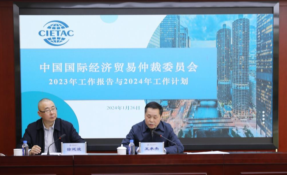 2024年1月26日下午,貿(mào)仲委2023年度干部職工總結大會在北京召開,貿(mào)仲委全體領導班子成員、總分會干部職工出席會議。會議全面回顧2023年工作成果,深刻分析當前形勢,謀劃部署2024年工作任務。貿(mào)仲委副主任兼秘書長王承杰作2023年工作總結,貿(mào)仲委黨委書記徐延波主持會議。