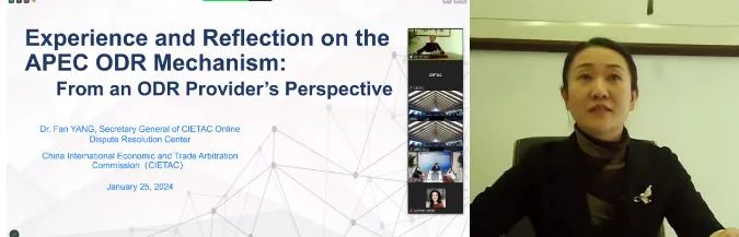 2024年1月25日-27日,亞太經合組織(APEC)經濟委員會關于網上爭議解決(ODR)的研討會在日本東京成功舉辦。會議的主題是“APEC經濟體的網上爭議解決實踐:包括APEC ODR合作框架下的實踐”,會期為三天,以線上線下相結合的方式進行。來自中國、中國香港、美國、日本、新加坡、韓國、加拿大、印度尼西亞等國家和地區(qū)的政府部門、爭議解決機構和學界的30多位在線爭議解決領域的專家、學者、機構代表等參加了會議研討。貿仲作為APEC ODR機制下官方認可的現(xiàn)有四個ODR服務機構之一,受邀派代表線上參會并發(fā)言。