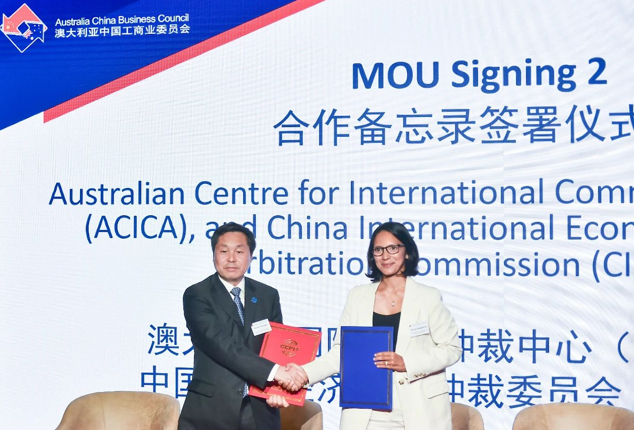 2024年4月15日,在中國貿(mào)促會(huì)會(huì)長(zhǎng)任鴻斌率中國企業(yè)家代表團(tuán)訪問澳大利亞期間,由中國貿(mào)促會(huì)和澳中工商業(yè)委員會(huì)共同主辦的中國-澳大利亞商務(wù)研討會(huì)在澳大利亞悉尼舉行。中國國際經(jīng)濟(jì)貿(mào)易仲裁委員會(huì)(以下簡(jiǎn)稱“貿(mào)仲”)副主任兼秘書長(zhǎng)王承杰與澳大利亞國際商事仲裁中心主席喬治婭·奎克(Georgia Quick)在悉尼簽訂了合作協(xié)議。