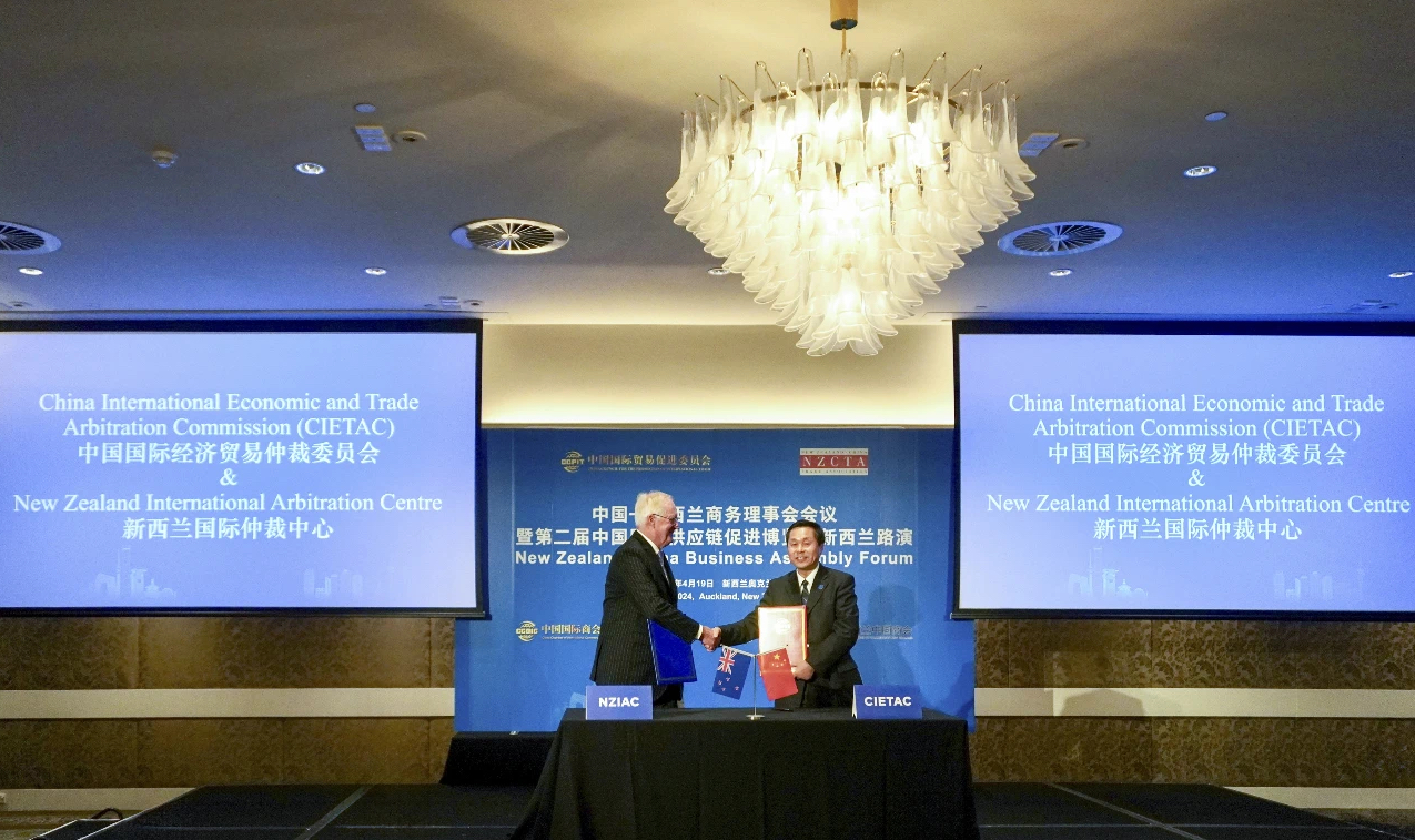 中國(guó)國(guó)際經(jīng)濟(jì)貿(mào)易仲裁委員會(huì)與新西蘭國(guó)際仲裁中心簽署合作協(xié)議