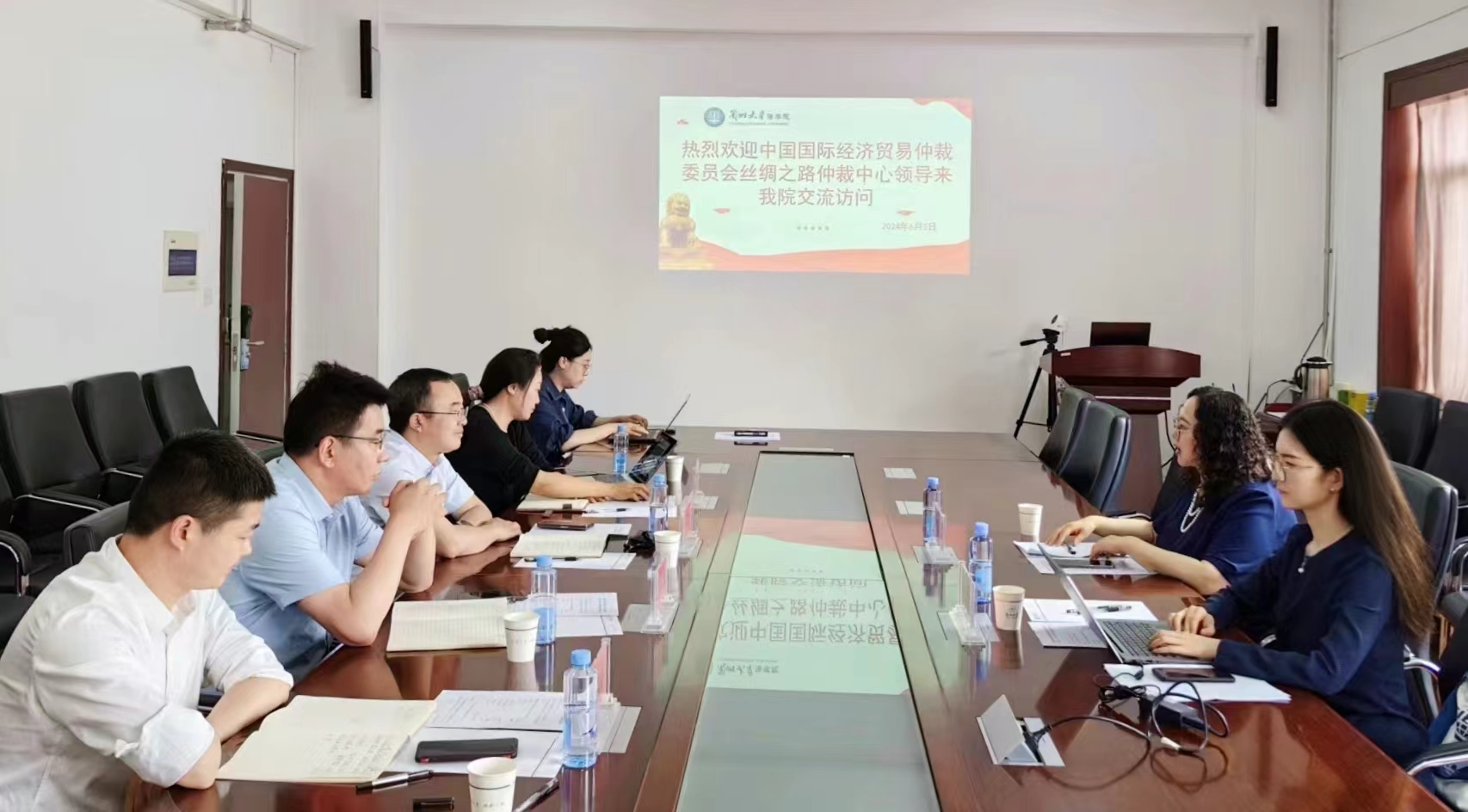 6月3日,中國國際經(jīng)濟(jì)貿(mào)易仲裁委員會絲綢之路仲裁中心(簡稱“貿(mào)仲絲路中心”)副秘書長蔣紅梅一行赴蘭州大學(xué)法學(xué)院調(diào)研,蘭州大學(xué)法學(xué)院黨委書記涂思龍,副院長韓雪梅,黨委副書記賀軍文,黨委副書記、副院長孫龍宇會見接待,雙方圍繞“支持涉外法治人才培養(yǎng)、服務(wù)‘一帶一路’高水平對外開放”進(jìn)行座談交流。