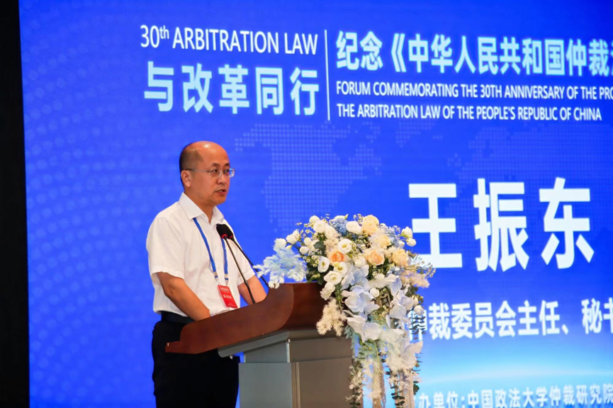 圖為青島仲裁委員會(huì)主任、秘書長(zhǎng)王振東發(fā)言