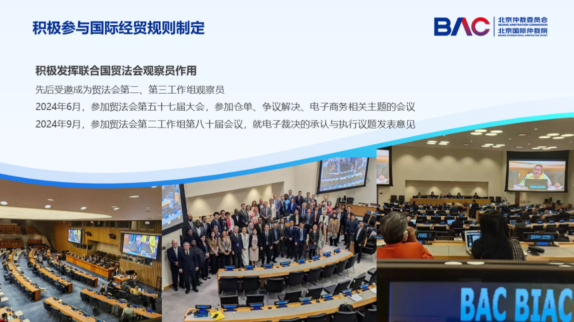 在全球化的背景下,北仲積極發(fā)揮聯(lián)合國貿(mào)法會(huì)觀察員作用,參與國際經(jīng)貿(mào)規(guī)則制定,不斷貢獻(xiàn)自己的研究成果和實(shí)踐經(jīng)驗(yàn),持續(xù)在國際舞臺(tái)發(fā)出中國聲音,展現(xiàn)中國仲裁機(jī)構(gòu)專業(yè)、開放、包容的國際形象。