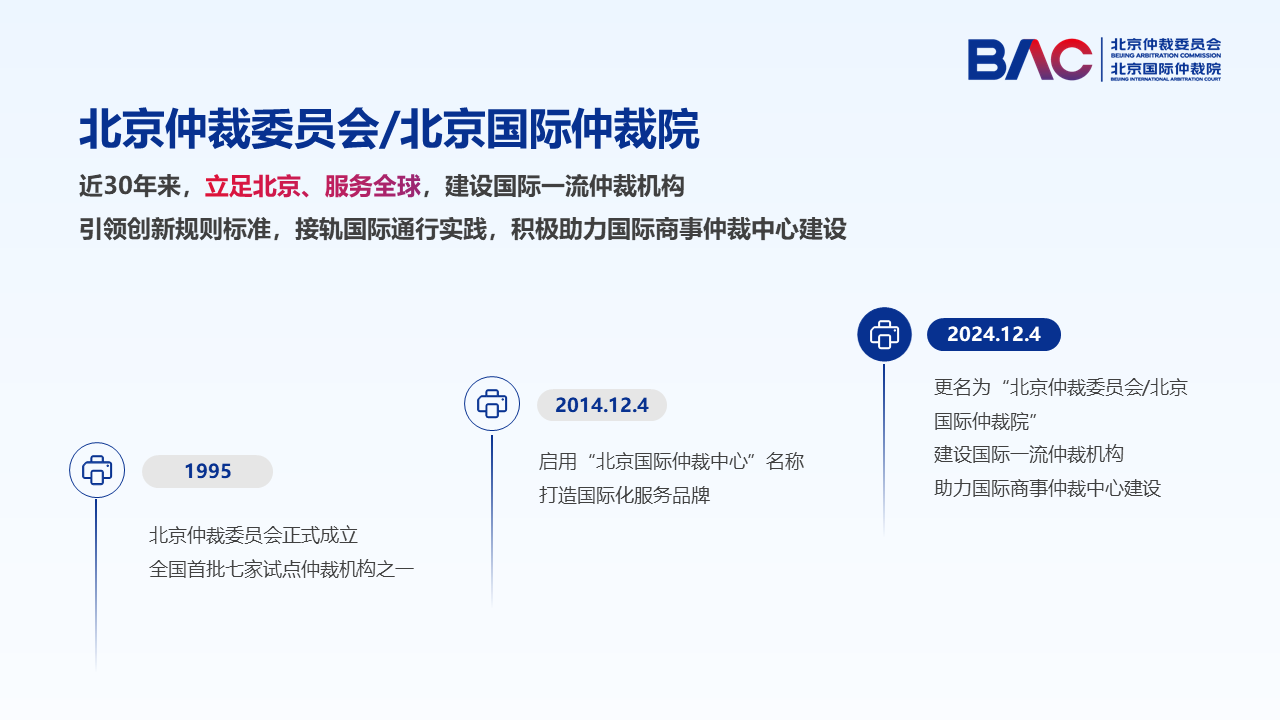 為積極響應(yīng)中央關(guān)于在北京市打造“服務(wù)國際科技創(chuàng)新中心與國際交往中心建設(shè)的國際商事仲裁中心”的要求,支持國際商事仲裁中心建設(shè),經(jīng)北京市司法局依法變更登記,北仲于2024年12月4日將“北京仲裁委員會(huì)/北京國際仲裁中心”的名稱變更為“北京仲裁委員會(huì)/北京國際仲裁院”。