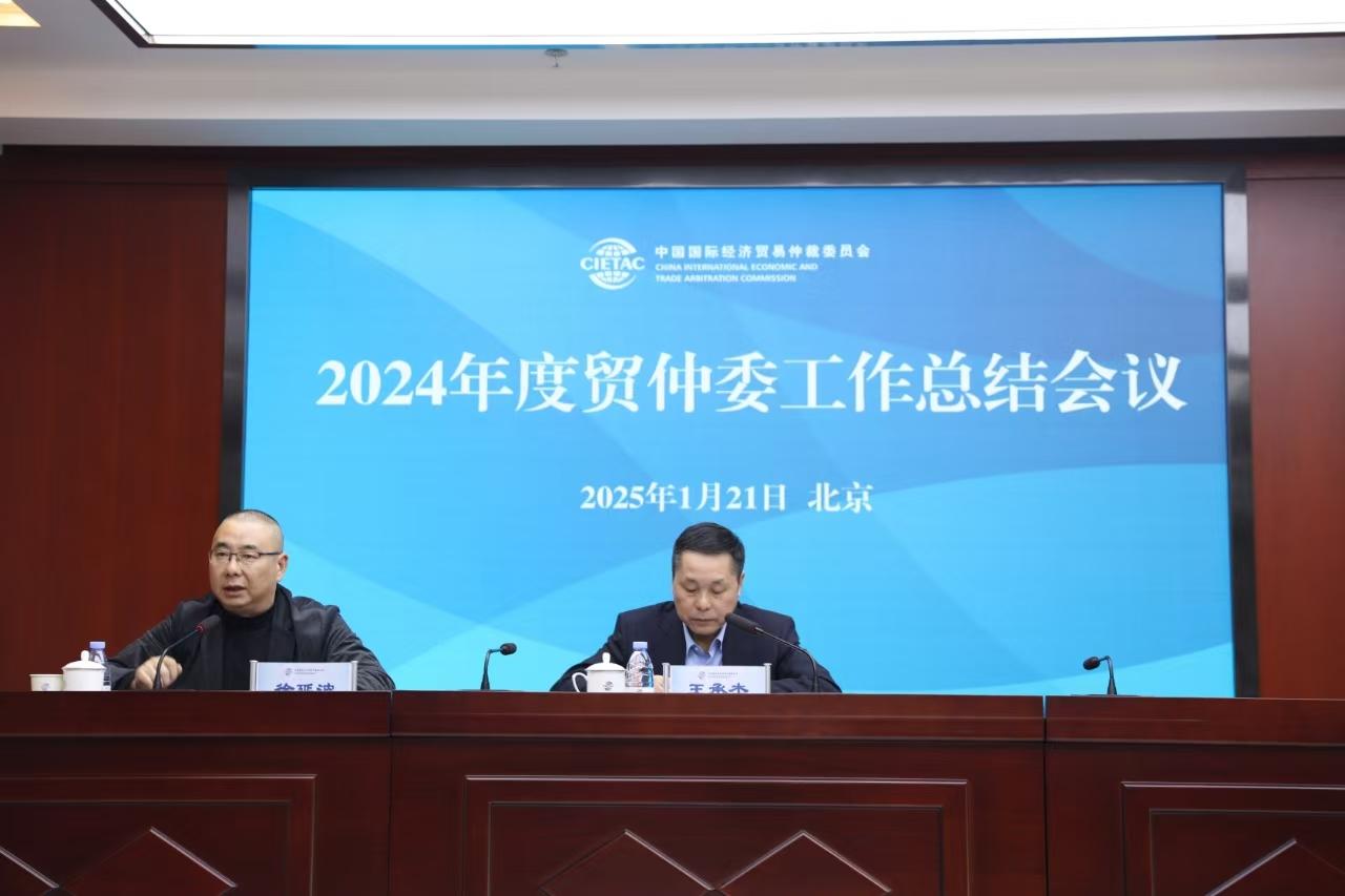 2025年1月21日,貿(mào)仲委2024年度干部職工總結(jié)大會(huì)在京召開。貿(mào)仲委全體領(lǐng)導(dǎo)班子成員、總分會(huì)干部職工齊聚一堂,共同回顧2024年工作成果,分析面臨的新形勢(shì),全面部署2025年重點(diǎn)工作任務(wù)。貿(mào)仲委副主任兼秘書長(zhǎng)王承杰作2024年工作報(bào)告,貿(mào)仲委黨委書記徐延波主持會(huì)議。