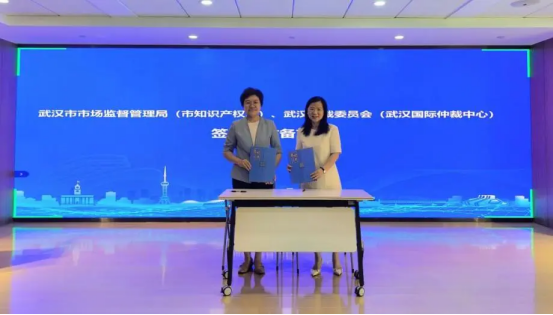 簽約儀式環(huán)節(jié),武漢市市場(chǎng)監(jiān)督管理局(武漢市知識(shí)產(chǎn)權(quán)局)黨組成員、副局長(zhǎng)夏蕾和武漢仲裁委辦黨組書記、主任羅平分別代表雙方單位簽署合作備忘錄。