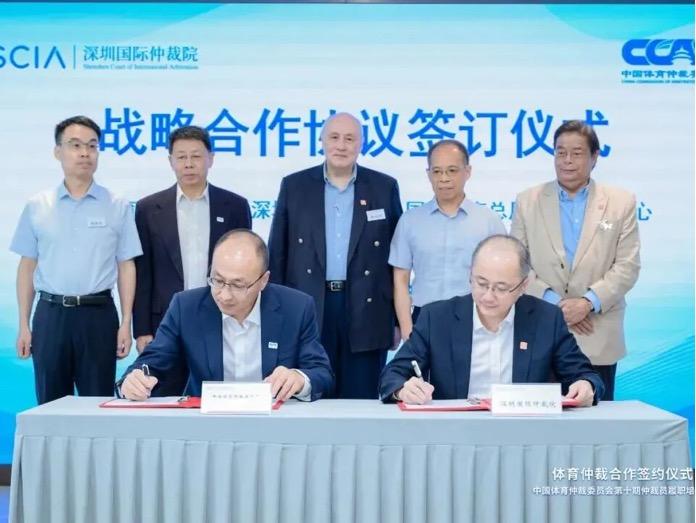 丁濤代表中國體育仲裁委員會及國家體育總局體育仲裁中心,劉曉春代表深圳國際仲裁院(粵港澳大灣區(qū)國際仲裁中心)簽署戰(zhàn)略合作協(xié)議,以服務(wù)體育強國建設(shè)和促進國際著名體育城市建設(shè)為目標開展深度合作、協(xié)同創(chuàng)新。梁定邦、張劍、盧松、熊德昌、王桂壎共同見證簽約。