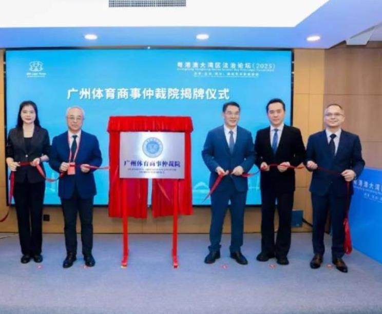 在當(dāng)天的分論壇上,還舉行了廣州體育商事仲裁院揭牌儀式。