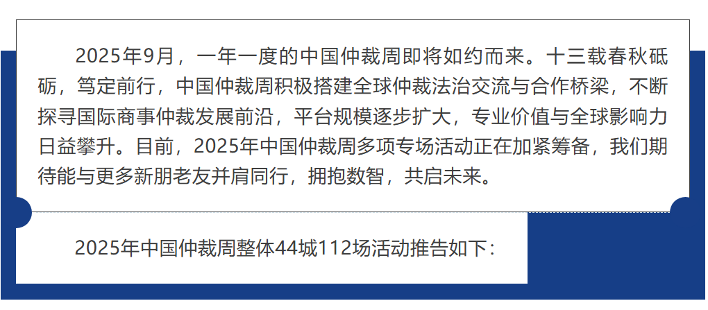 2025中國仲裁周整體44城112場(chǎng)活動(dòng)推告