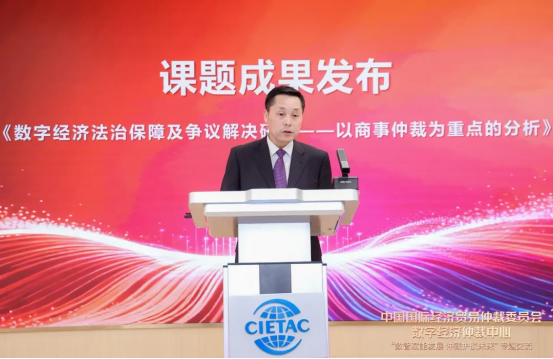 據(jù)介紹,作為我國首家涉外仲裁機構(gòu),貿(mào)仲始終以服務(wù)國家戰(zhàn)略發(fā)展為己任,高度重視數(shù)字中國建設(shè),三年前就組建了高素質(zhì)的課題研究團隊,啟動相關(guān)研究工作,并特邀貿(mào)仲仲裁員、中央黨校(國家行政學(xué)院)政法部民商經(jīng)濟法室主任王偉教授擔(dān)任課題組負責(zé)人。為確保研究成果精準對接數(shù)字經(jīng)濟爭議解決現(xiàn)實需求,兼具權(quán)威性與實踐性,課題組廣泛匯聚政、學(xué)、研各界智慧,集結(jié)國家法官學(xué)院、中國司法大數(shù)據(jù)研究院、最高人民檢察院檢察理論研究所、中國人民公安大學(xué)法學(xué)院、浙江省高級人民法院研究室等多家權(quán)威單位專家學(xué)者,立足國家治理全局,緊扣數(shù)字法治前沿,歷經(jīng)多輪實地調(diào)研、專題研討與反復(fù)打磨,最終形成近 15 萬字的高質(zhì)量研究成果《數(shù)字經(jīng)濟法治保障及爭議解決研究——以商事仲裁為重點的分析》。