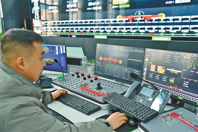 在老石旦煤礦生產(chǎn)指揮中心智能化調(diào)度室,隨著工作人員通過5G信號(hào)向井下工作面發(fā)出工作指令,深井中的皮帶運(yùn)輸機(jī)、破碎機(jī)、轉(zhuǎn)載機(jī)等一個(gè)個(gè)重型機(jī)械陸續(xù)被“激活”進(jìn)入生產(chǎn)狀態(tài)。