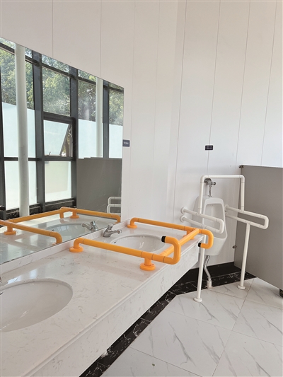 “設(shè)施配套齊全,干凈整潔,造型美觀大方,顏值和功能均‘在線’?!?月14日晚,在市區(qū)東湖公園,飯后散步的市民李發(fā)國告訴記者,去年新建的公廁尤其方便了老人,自己母親身體不好,以前出來玩一會兒就到處找?guī)?,現(xiàn)在不僅公廁多了,而且全部配建了助老設(shè)施,讓膝蓋不好的母親如廁更輕松舒適。