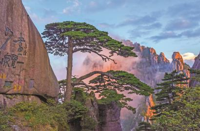 霞映迎客松