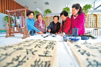 圖④社區(qū)養(yǎng)老中心書畫室里墨飄香。(記者 田宜龍 王雪娜 吉小平 通訊員 王倩)