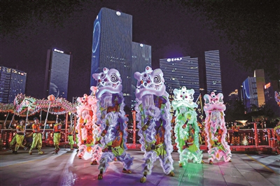 消費(fèi)場(chǎng)景方面,城市燈光秀、周末音樂匯及《千燈謠》《幻彩耀燈湖》音樂噴泉水秀等劇目在片區(qū)內(nèi)常態(tài)化展演?!皭偱芄鸪窃匠霾?show出你軌跡”掀起全民打卡熱潮,夜光龍獅薈、千燈湖電光龍舟漂移等活動(dòng)展現(xiàn)傳統(tǒng)文化魅力迅速“火出圈”,既有品牌,又有熱度。