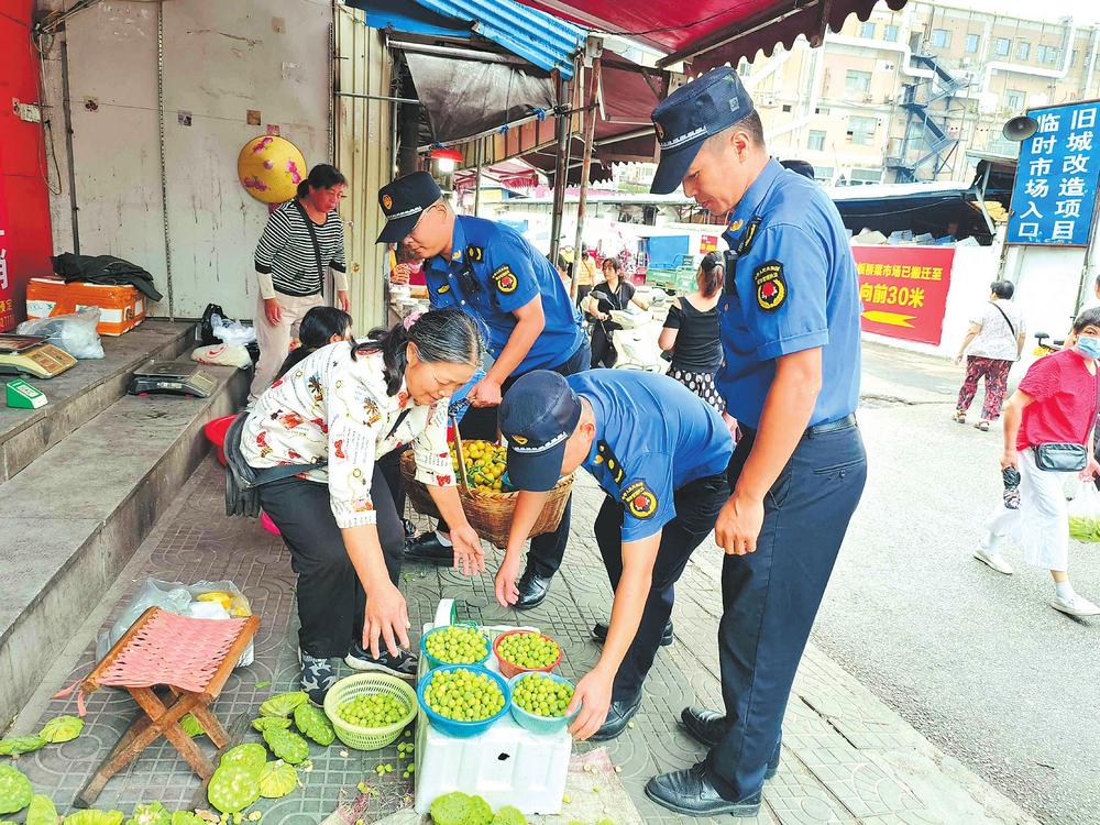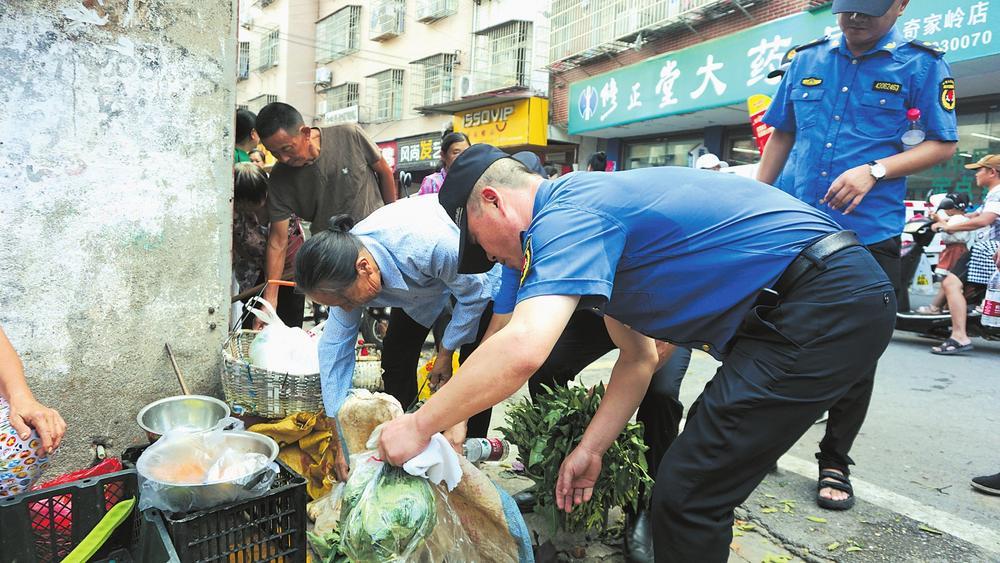 “我們采取延時、錯時,定人、定崗、定責(zé)的工作機制,安排執(zhí)法隊員錯時對農(nóng)貿(mào)市場周邊及臨街門店開展逐一檢查,堅決杜絕部分商戶、流動攤販出店經(jīng)營、占道經(jīng)營和擺放遮陽傘阻擋過道等行為?!痹诮瘗樎繁眰?cè)花板橋菜市場及花鳥路周邊,區(qū)城管局五里牌中隊通過采用錯時執(zhí)法和取締一批、歸市一批、疏導(dǎo)一批的辦法,在花鳥路附近的南北樓設(shè)立臨時疏導(dǎo)區(qū),為自產(chǎn)自銷的菜農(nóng)創(chuàng)造合法的經(jīng)營地點,通過耐心宣傳相關(guān)政策規(guī)定,主動幫助商戶搬移占道物品等文明執(zhí)法方式,工作得到廣大商戶和流動攤販的理解及市場周邊百姓的支持。