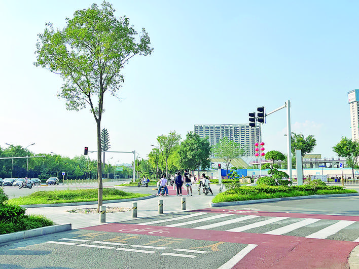 市民過馬路采取無障礙上島模式,給過馬路的行人和非機(jī)動(dòng)車提供安全的等待區(qū)域,避免行人和非機(jī)動(dòng)車與機(jī)動(dòng)車發(fā)生沖突,保障廣大市民通過交叉口時(shí)的安全。