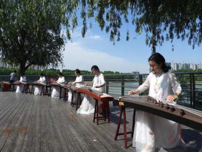 同樣,位于中州大道與濱河路西南角的頌園,也成了居民休閑好去處。該園占地1.1萬余平方米,通過微地形營造高低起伏的空間結(jié)構(gòu),配套有景觀小品、景墻、戲臺等設(shè)施?!坝螆@建得真不賴,我們幾個老姐妹沒事兒就來這兒唱戲,方便多了?!?6歲的馬維娜唱完一段豫劇《穆桂英掛帥》選段,把話筒遞給下一個登臺獻唱的姐妹。