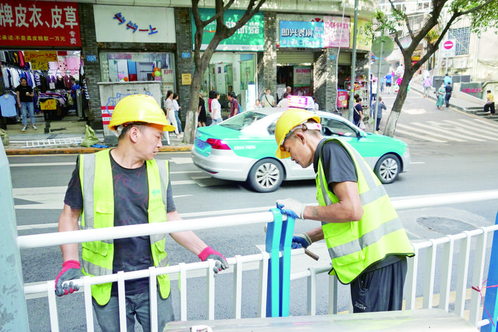 走在高筍塘商圈,市民們欣喜地發(fā)現(xiàn),新城路、孫家書房路、電報(bào)路都新安裝了護(hù)欄!藍(lán)色立柱、白色欄桿的新護(hù)欄結(jié)實(shí)又美觀,就像一道風(fēng)景線。