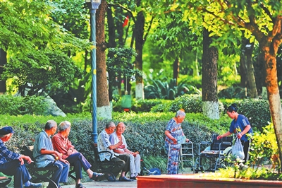 子如廣場,市民坐在樹蔭下談笑風(fēng)生。 記者 王瀘州 攝