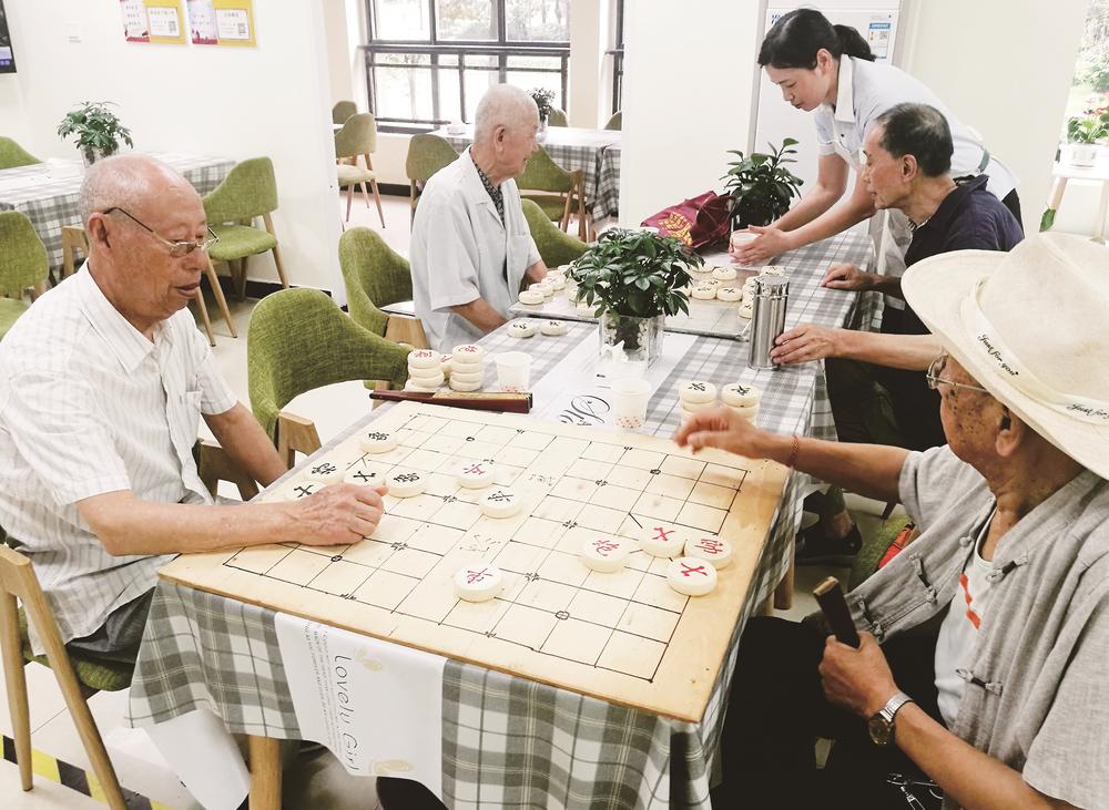在“物業(yè)+養(yǎng)老”服務(wù)中心,老人們下棋娛樂。 本報記者 李家平 攝