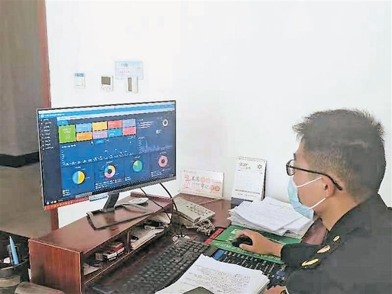 石嘴山市市場(chǎng)監(jiān)督管理局工作人員在電腦上進(jìn)行監(jiān)督。 (圖片由受訪(fǎng)單位提供)