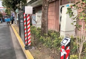 滬上一些社區(qū)的“智慧系統(tǒng)”讓“空中蜘蛛網(wǎng)”徹底消失的智能充電設(shè)備。