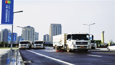 為了提高清掃保潔質(zhì)量,2015年,市政府投資1.8億元采購了一批先進(jìn)的環(huán)衛(wèi)機(jī)械設(shè)備,三區(qū)清洗、清掃、灑水、沖洗、噴霧等車輛達(dá)到430臺(tái)套,徹底改變了原來由環(huán)衛(wèi)工人掄大掃把掃街的模式,形成了以“沖、洗、掃、收”加人工保潔的“4+1”環(huán)衛(wèi)作業(yè)模式。機(jī)械化沖洗路面徹底取代環(huán)衛(wèi)工人掃把干掃的人工清潔,把環(huán)衛(wèi)工人解放出來,去從事綠化帶、行道樹坑衛(wèi)生的清潔和道路保潔、城市家具擦拭等工作,降低環(huán)衛(wèi)工人的勞動(dòng)強(qiáng)度,提高了整個(gè)城市的潔凈度和空氣濕度,清掃保潔呈現(xiàn)出立體化、全方位、全覆蓋作業(yè)的新模式。