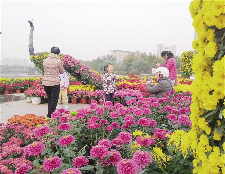 菊花展上,市民拍照賞花(本報記者 高咪 攝)