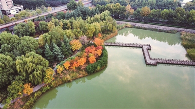 初冬時節(jié),興洛湖公園依舊景色如畫。