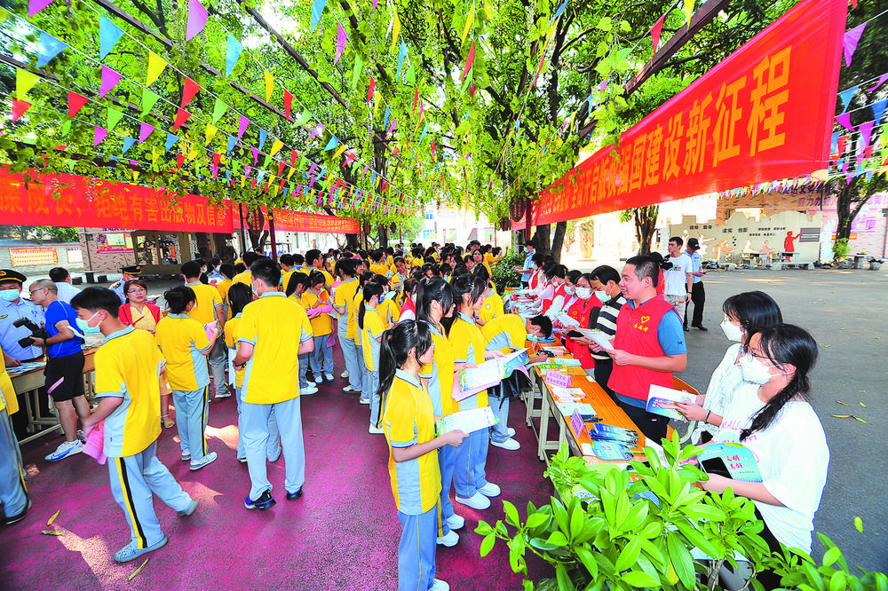 在百色中學(xué)開展創(chuàng)城宣傳志愿服務(wù)活動。
