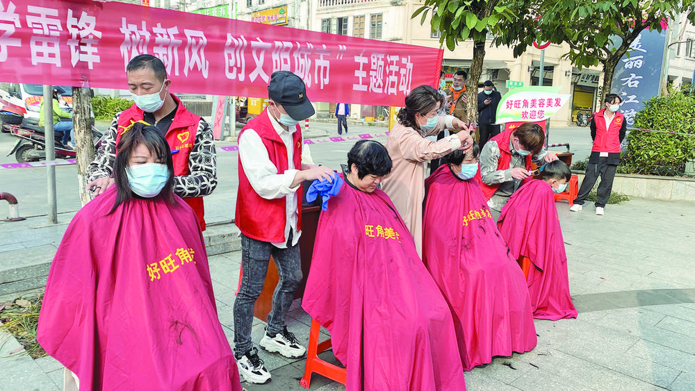 志愿者為市民免費理發(fā)。