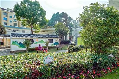 “微更新90%的內(nèi)容,都是居民自己完成的?!睘轫椖刻峁I(yè)藝術(shù)支持的王翔威介紹,設(shè)計師經(jīng)與居民討論確定喜愛的江南風格圖畫,并在墻上用鉛筆打稿,隨后由“香楠路家園守護隊”及其他居民耗時2周時間,完成全部墻繪上色。此外,居民文藝骨干還發(fā)揮主觀能動性,在廣場正中一座小亭子的立柱上,添上內(nèi)容為“露潤香園浮瑞色 霜含雅韻掛繁英”的對聯(lián),使環(huán)境再添幾分“文氣”。長廊、粉墻、拱門,墻上的“小橋流水”,外加紅杏樹、柳樹、風信子等景致,讓人仿佛“誤入”一座簡約版的江南園林。
