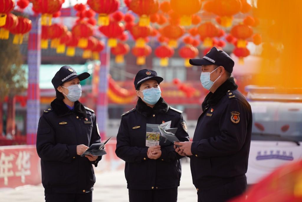 圖為節(jié)日期間堅守一線的城管隊員
