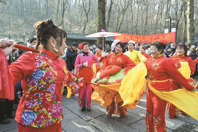 “總要來廟會轉(zhuǎn)一圈,才能感受到‘年’的那個熱鬧勁兒?!?月30日,安徽省滁州市瑯琊山醉翁亭前人如潮涌,市民吳彤彤帶著4歲的女兒,把一根紅艷艷的平安帶系在即將萌發(fā)新芽的樹枝上。
