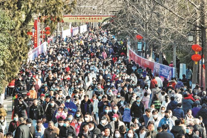 瑯琊山北門,前來趕廟會的游客絡(luò)繹不絕,人山人海。 計(jì)成軍 徐 浩 攝