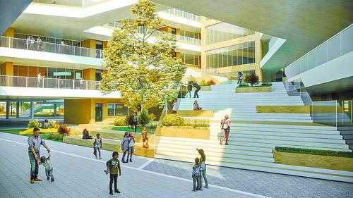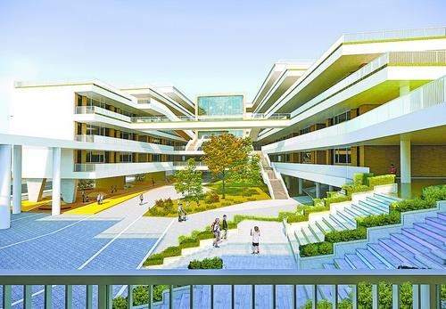 騰出空間辦教育,居民在家門口就能享受優(yōu)質(zhì)教育資源。圖為鐘宅民族學(xué)校規(guī)劃圖。圖/建發(fā)城投提供