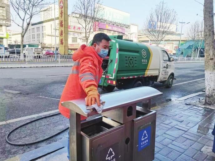 精細(xì)清洗,確保衛(wèi)生無死角。在只楚路,一抹橙色的身影蹲在垃圾箱旁,手里拿著抹布仔仔細(xì)細(xì)擦拭著垃圾箱。當(dāng)記者走近時(shí),保潔員孟凡榮指著垃圾箱的表面開心地告訴記者:“看,像家里的鏡子一樣,都能照出人影了??粗筛蓛魞舻睦洌疫@心里也很美?!睘楸WC大掃除全覆蓋,芝罘區(qū)環(huán)衛(wèi)中心督導(dǎo)兩家服務(wù)企業(yè)組織保潔員開展精細(xì)化擦拭,同時(shí)加大對(duì)垃圾點(diǎn)位周邊的沖洗力度,清除衛(wèi)生死角,確保垃圾箱及周邊干凈整潔。