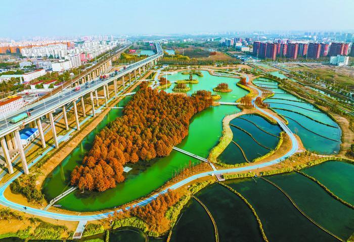 春雨微風(fēng)假日濃,小橋流水翠音融。站在蕪湖市朱家橋尾水濕地公園觀景臺(tái)上,只見湖心島上植被郁郁蔥蔥、湖水清澈,岸上不遠(yuǎn)處還有成片的花草隨風(fēng)搖曳……曾幾何時(shí),這里曾是長江大橋下和鐵路周邊的閑置土地,屬于城市環(huán)境管理的空白區(qū),垃圾遍地、一片臟亂,周邊居民避之不及……如今,這里煥然一新,成為市民休閑娛樂的網(wǎng)紅“打卡地”。朱家橋尾水濕地公園從昔日“龍須溝”到今日“風(fēng)光帶”的華麗蝶變,是蕪湖市生態(tài)文明建設(shè)的一個(gè)縮影,類似的還有大陽垾城市濕地公園、蘆花蕩濕地公園、東草湖濕地公園、奎湖濕地公園等,共同構(gòu)成蕪湖“水網(wǎng)密布、湖泊星羅棋布”的自然風(fēng)貌。