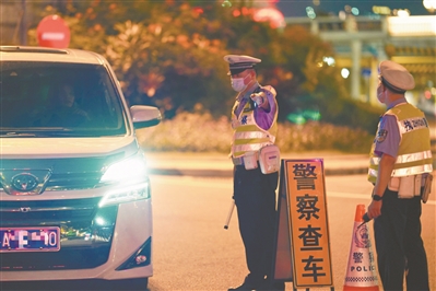 夜間,交警在重要路段查車