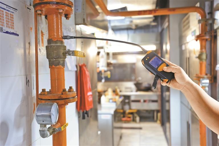 “檢查的時候,我們主要看看燃?xì)夤艿馈⑷細(xì)庠O(shè)備、用氣設(shè)備及附屬設(shè)施等是否腐蝕損壞,再用燃?xì)庑孤z測儀進行泄漏檢測?!北R佑發(fā)解釋。