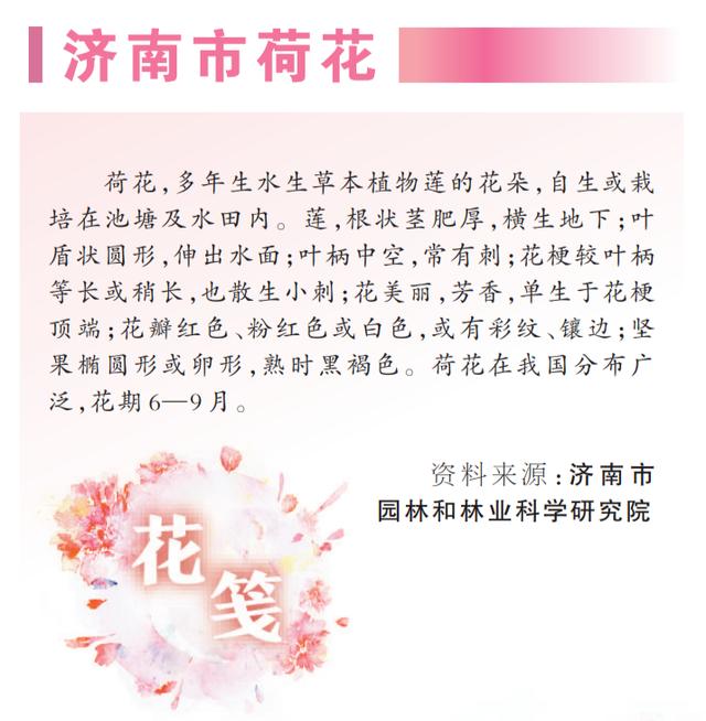 1986年,濟南市將荷花定為市花。荷花不僅以明艷色彩、淡淡香氣深入濟南人心中,更以高潔優(yōu)雅的品格,融入城市氣質(zhì),成為獨特的城市標識。