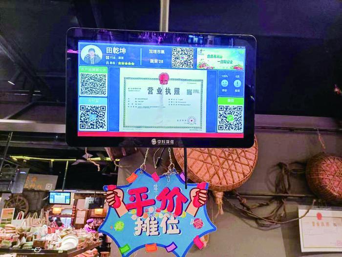 經(jīng)營戶檔案、菜價、營業(yè)執(zhí)照、溯源公示、付款二維碼……在雙塔市集,這些信息全部被集中在一塊清晰的顯示屏上,一目了然,這樣的顯示屏是生鮮區(qū)中每個商戶的“標(biāo)配”。對于老百姓們最關(guān)心的農(nóng)藥殘留問題,也能在顯示屏上找到答案。在雙塔市集,每年被送檢的樣品約1.1萬個。以天為單位,在規(guī)定時間檢測完畢后,結(jié)果被上傳至政府網(wǎng)絡(luò)平臺,同時在顯示屏上進(jìn)行公示,方便查看,讓市民更加放心、舒心。