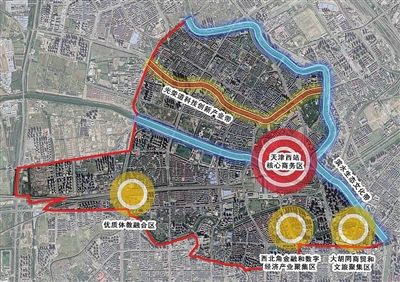 根據(jù)《總體方案》,京津冀同城商務(wù)區(qū)正在打造“一核兩帶三組團(tuán)”的空間布局。其中,“一核”即天津西站核心商務(wù)區(qū),“兩帶”是光榮道科技創(chuàng)新產(chǎn)業(yè)帶和濱水生態(tài)文化帶,“三組團(tuán)”為西北角金融和數(shù)字經(jīng)濟(jì)產(chǎn)業(yè)聚集區(qū)、大胡同商貿(mào)和文旅聚集區(qū)、優(yōu)質(zhì)體教融合區(qū)。未來該商務(wù)區(qū)將建成高鐵樞紐綜合開發(fā)標(biāo)桿區(qū)、同城生產(chǎn)生活引領(lǐng)區(qū)、都市型產(chǎn)業(yè)升級先行區(qū)、津衛(wèi)人文生態(tài)魅力區(qū)。