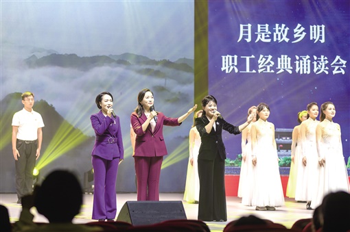 吉首市月是故鄉(xiāng)明·職工經(jīng)典誦讀會(huì)選手在誦讀《中國(guó)的圓月亮》。彭璟 攝